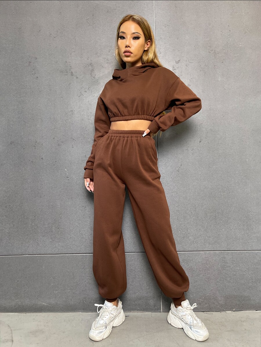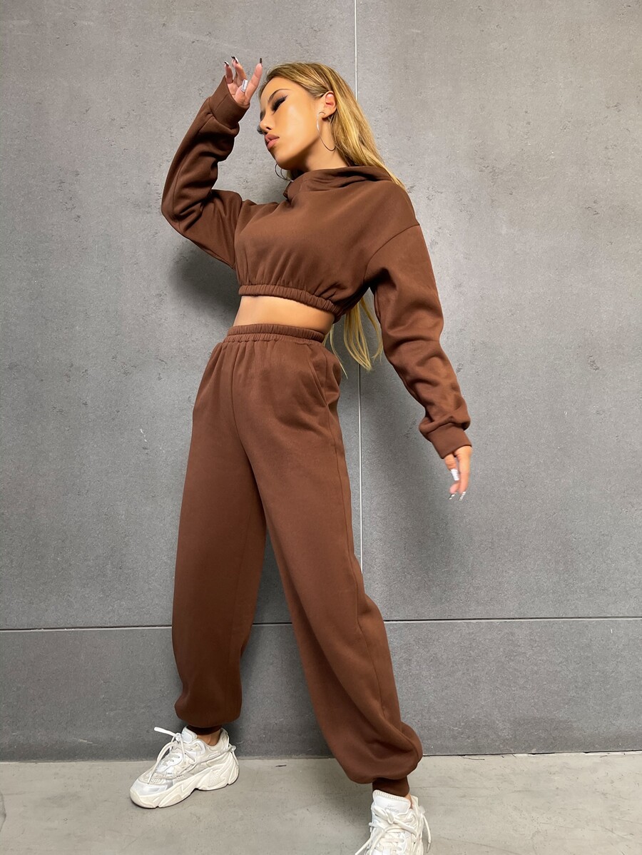 بنطلون رياضي مع هودي قصير منخفض الكتف
