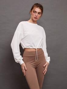 بلوزة رياضية نسائية بياقة طاقم وأكمام طويلة وخصر مربوط بسحاب، قصيرة الطول