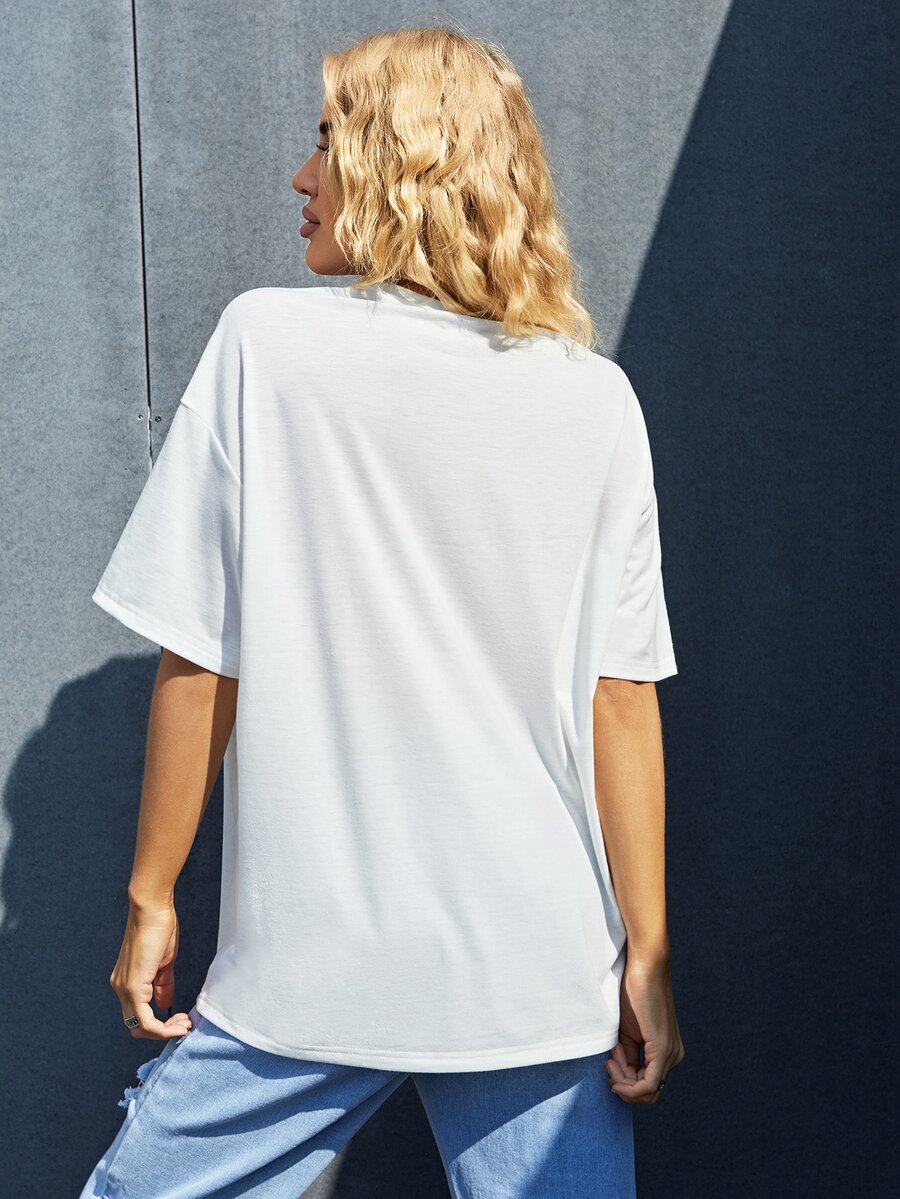 تي شيرت بخط طويل وبجرافيك سيارة وعبارة منخفض الاكتاف