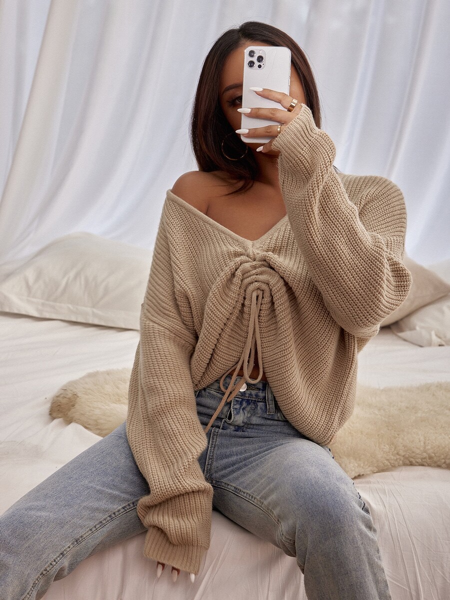 لباس علوي برباط بصدر مكشكش ومنخفض الكتف