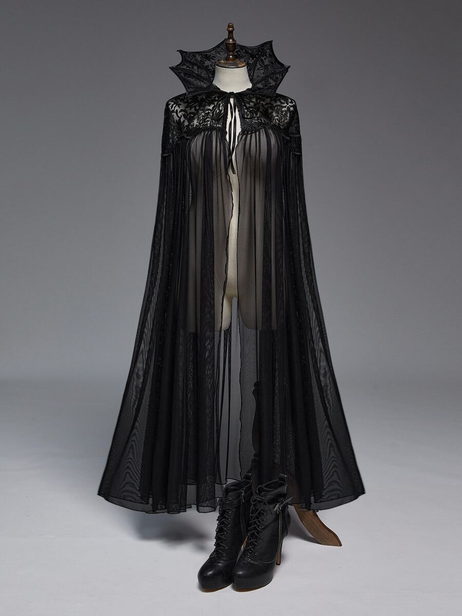 EDITION بلوزة فضفاضة مع طوق من الدانتيل والشبك بتصميم خفاش على الطراز الجوثي لحجم كبير، مناسبة لمناسبة هالوين