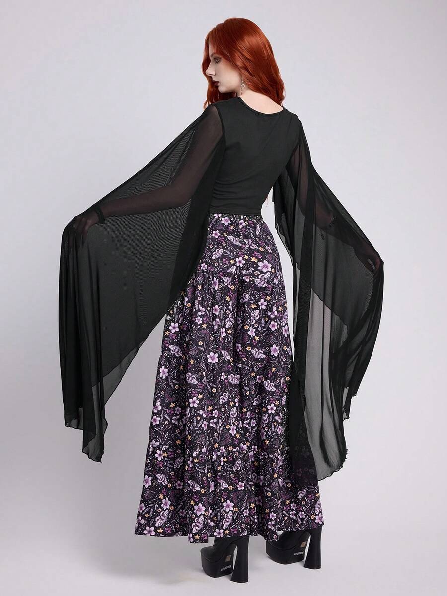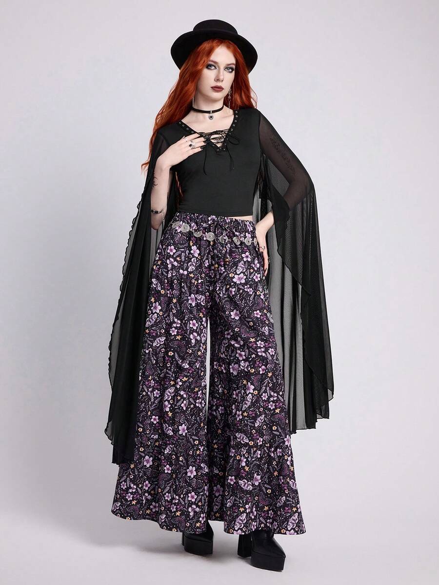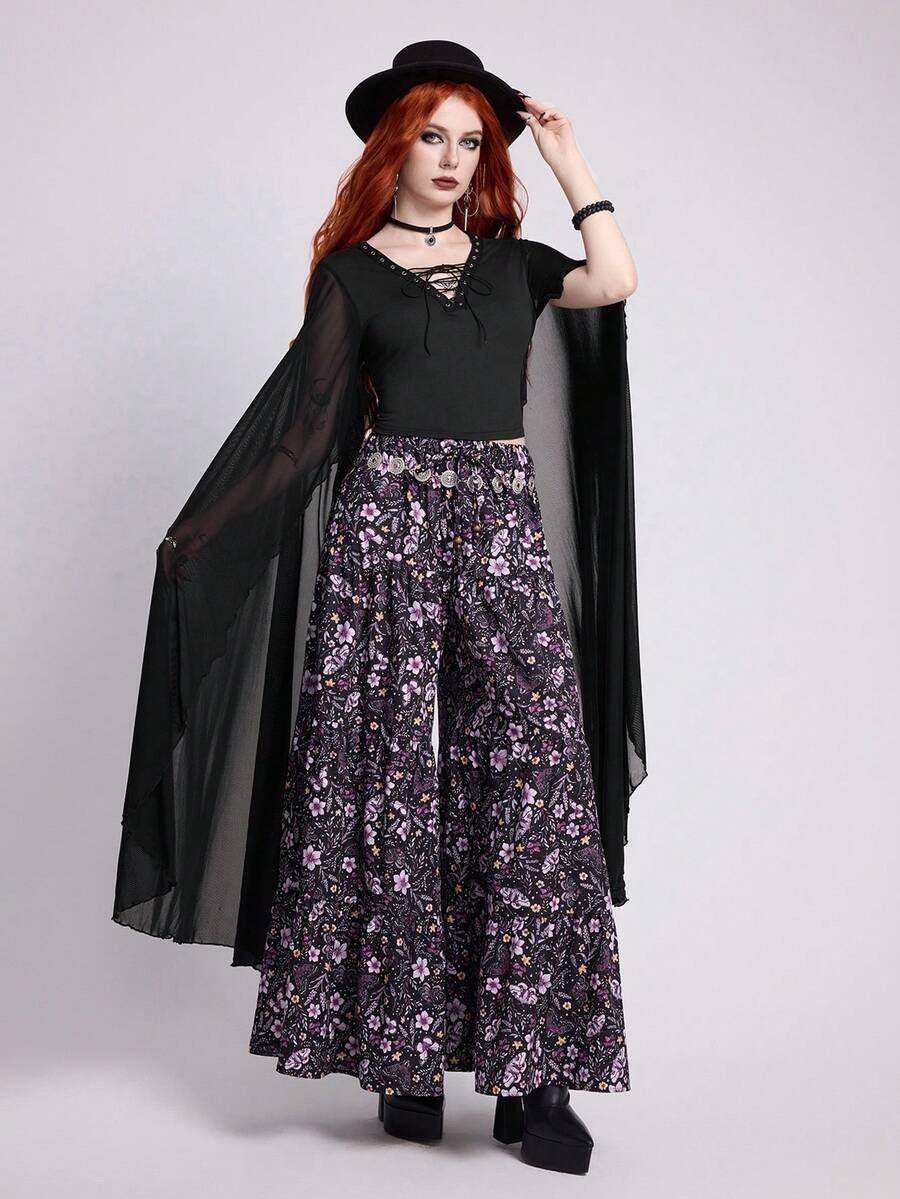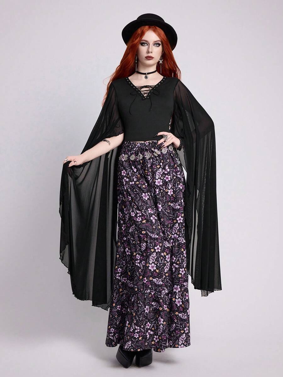 EDITION قميص بأكمام واسعة متموجة وربطة عنق ، بأسلوب جوثي للنساء، صيفي