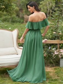 فستان وصيفة العروس من الشيفون الأخضر بأكمام مكشكشة على الكتف وشق جانبي على شكل حرف A، فستان لضيوف الزفاف، مناسب للزفاف والعطلات والحفلات التخرج
