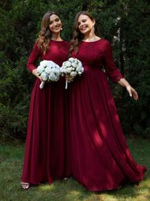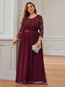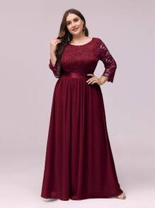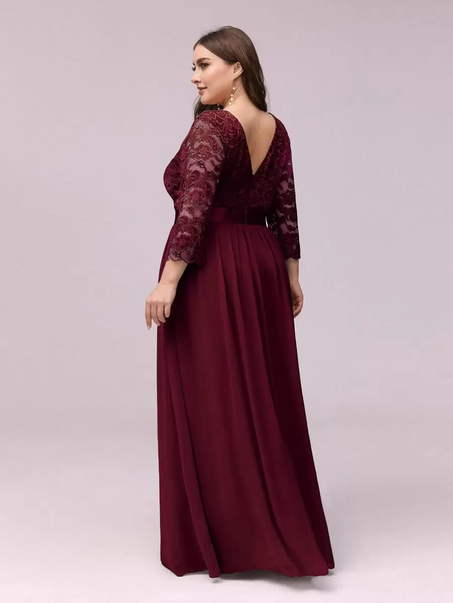 فستان حفلة شيفون بصدر بدانتيل مقاس كبير ومنخفض خلفي