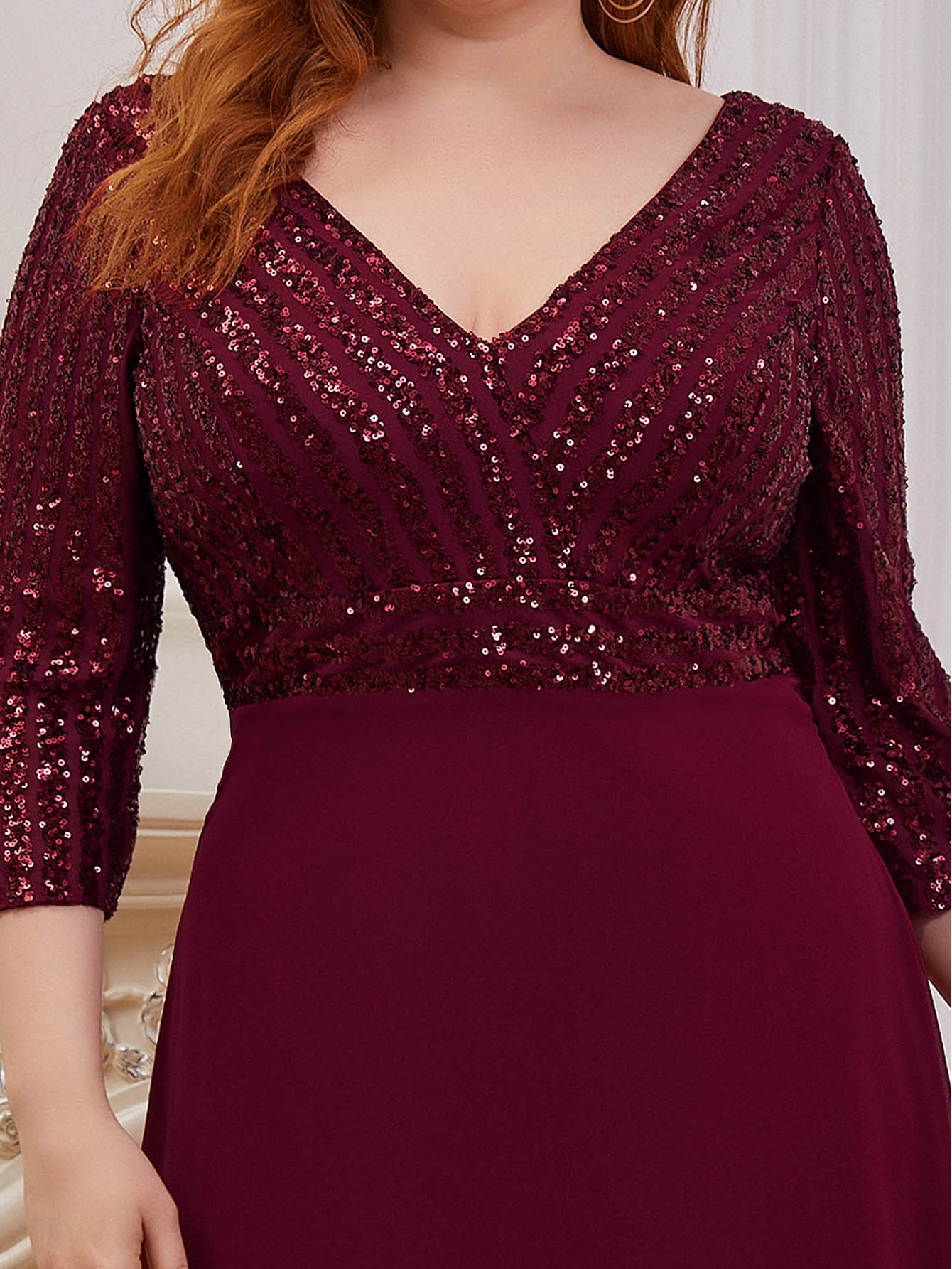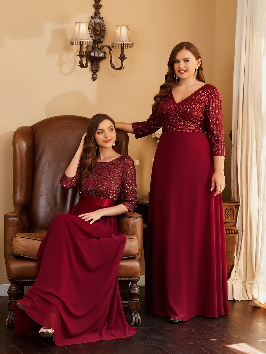 EVERPRETTY فستان سهرة حفلات الزفاف الرسمي ذو رقبة على شكل V وخصر عالي من الشيفون البرغندي المزين بالترتر، مناسب لحفلات الزفاف في فصل الخريف