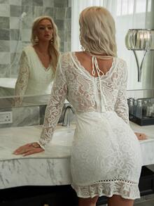 Eilly Bazar فستان بدانتيل وبحافة مكشكشة مع ربطة ظهر
