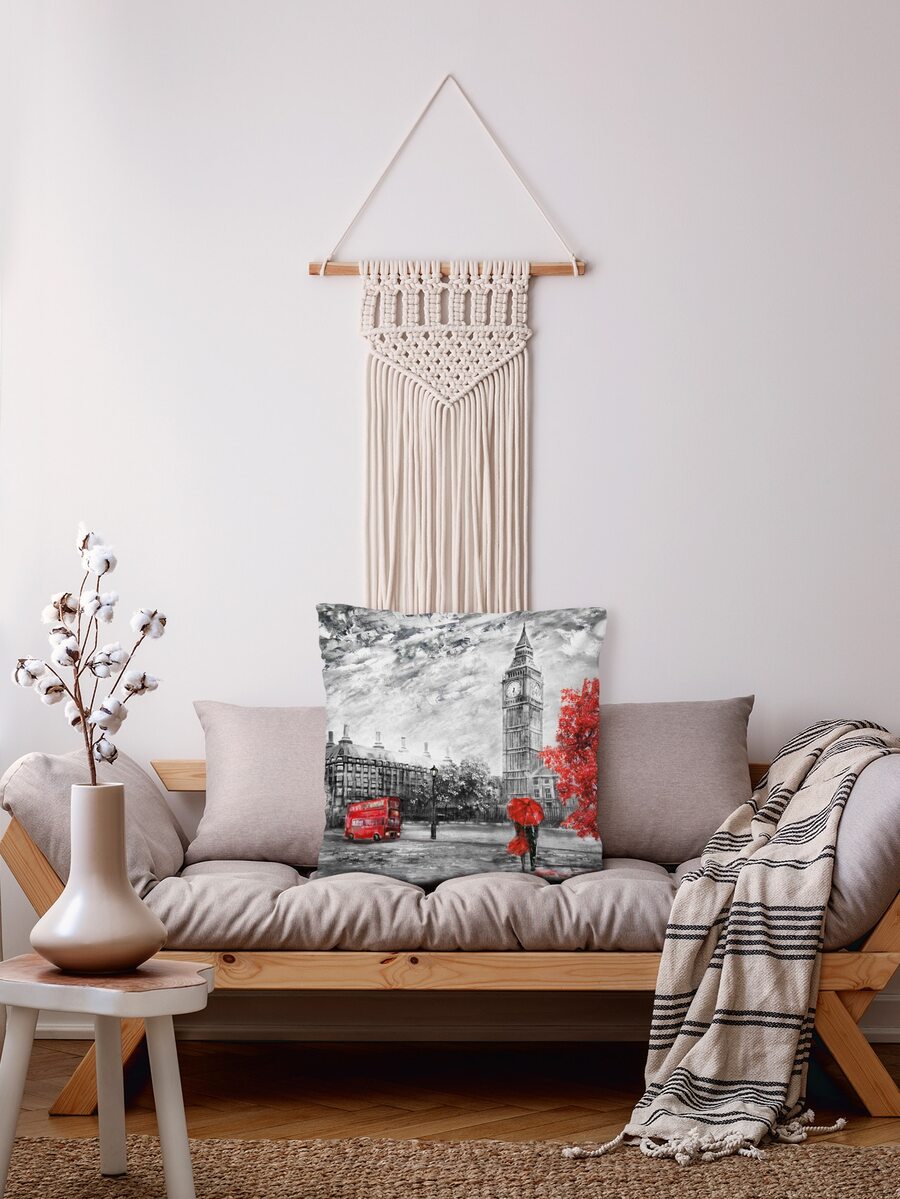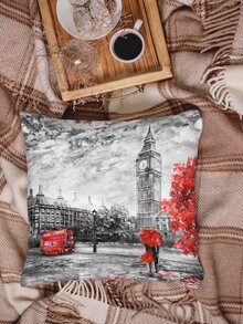 غطاء وسادة بطباعة برج اليزابث بدون حشوة