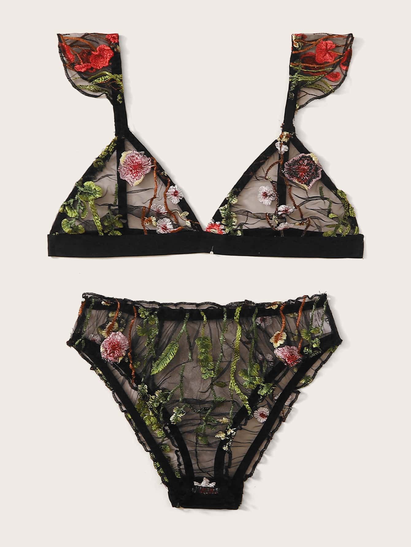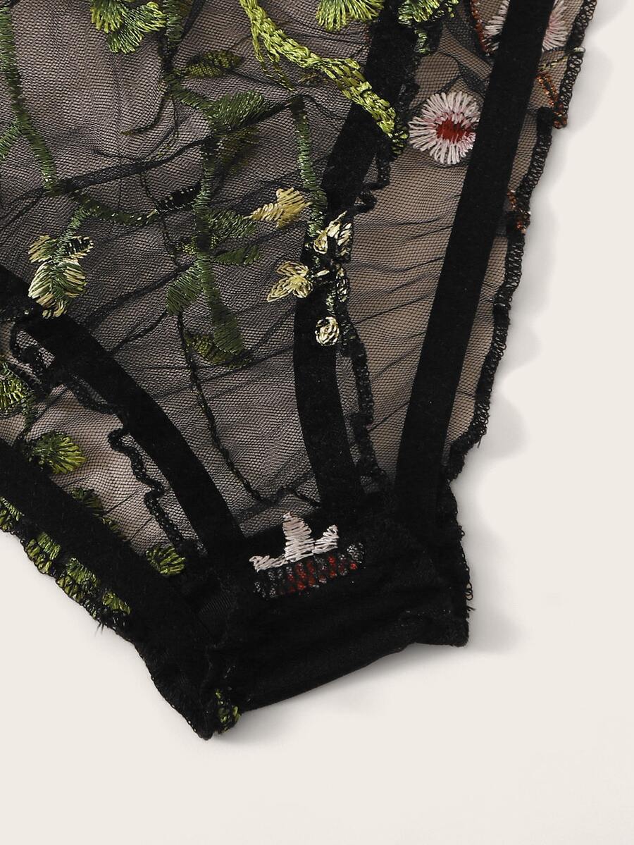 ملابس سكسي داخلية التطريز رسم الزهر رومانسي