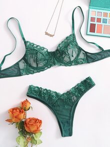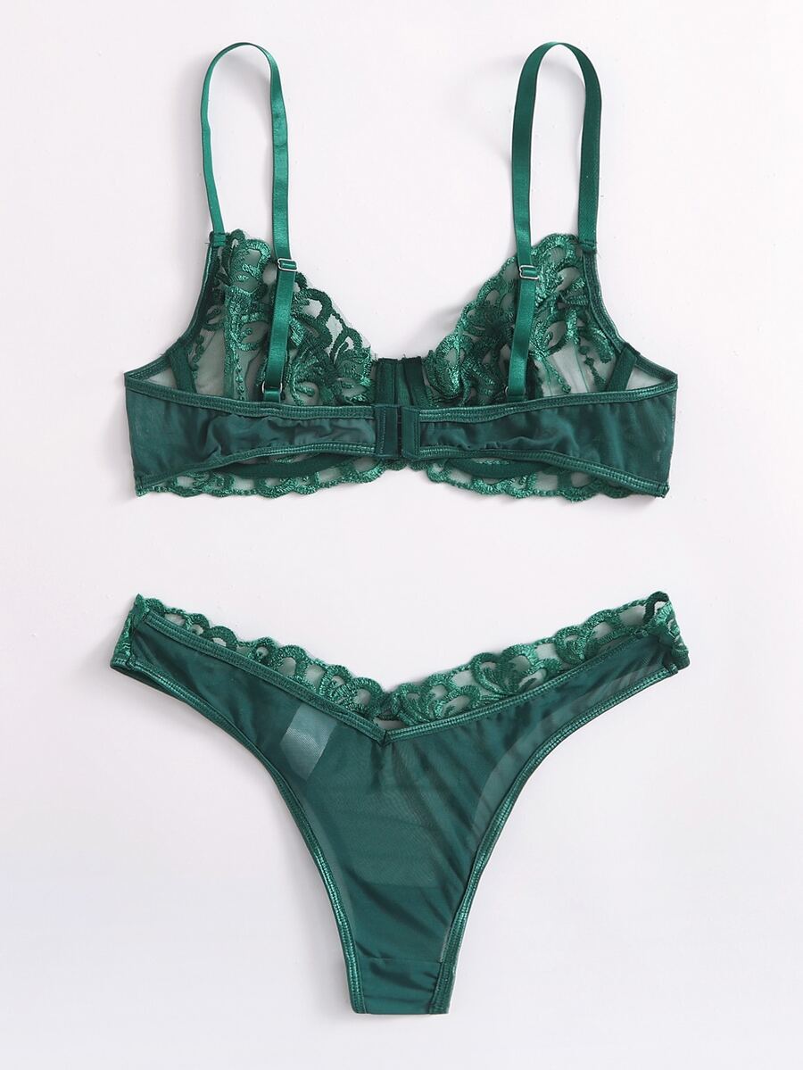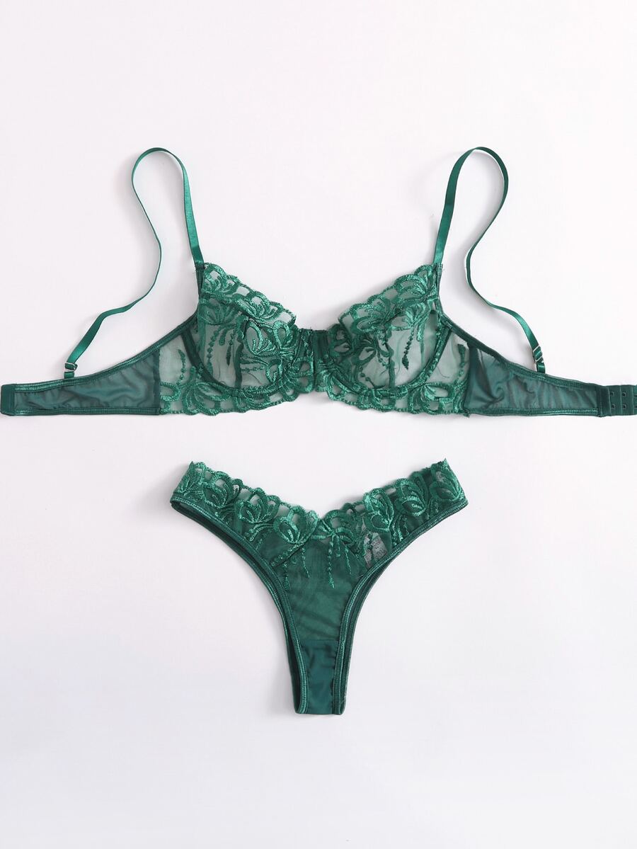 مجموعة ملابس داخلية بحمّالة صدر بأسلاك و ملابس داخلية نسائية من الشبكة المطرّزة