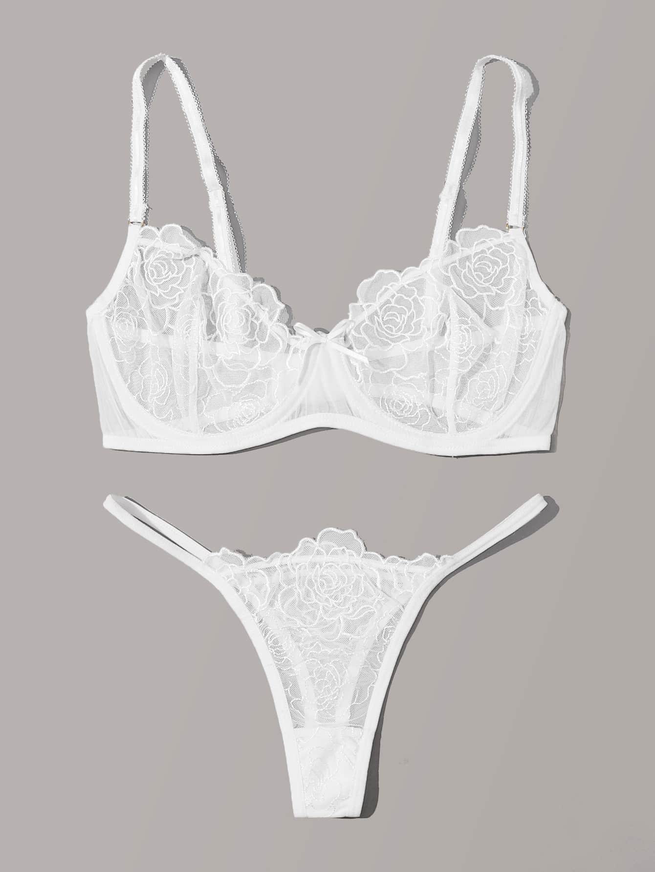 مجموعة ملابس داخلية من الشبك المطرز والحمالة المدعمة، مثيرة