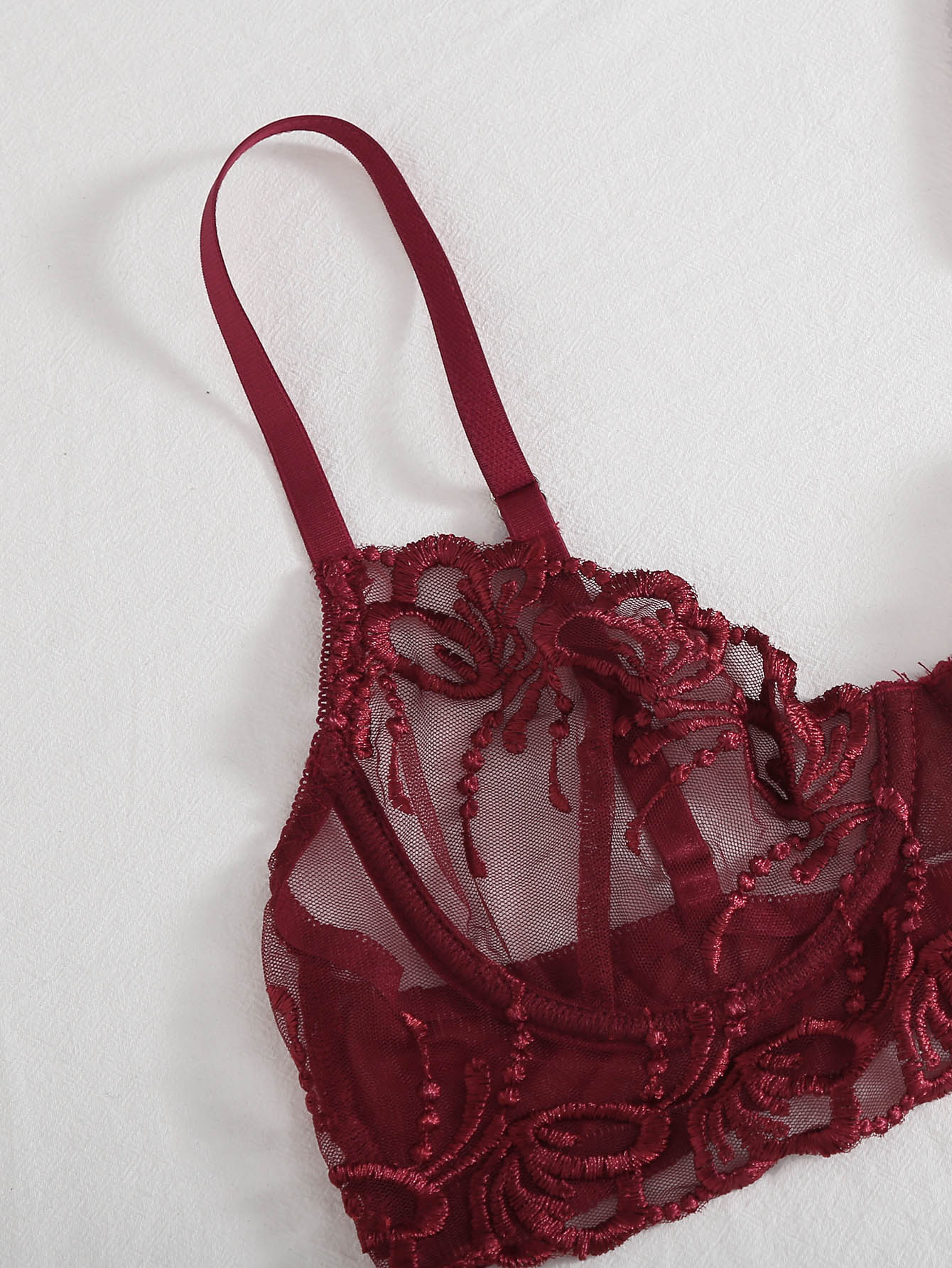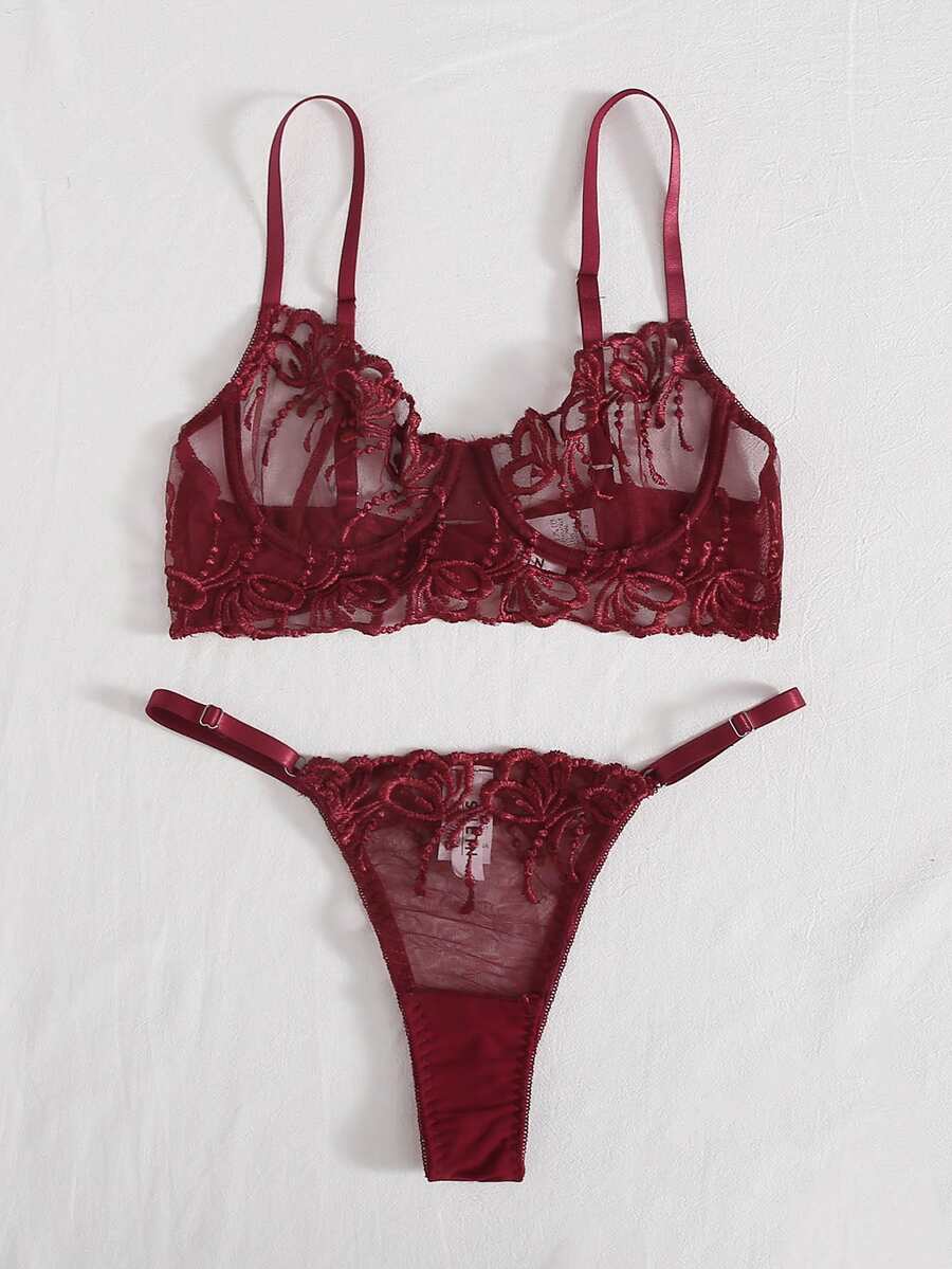 مجموعة ملابس داخلية من الشبك المطرز والحمالة بسلكي، مثيرة