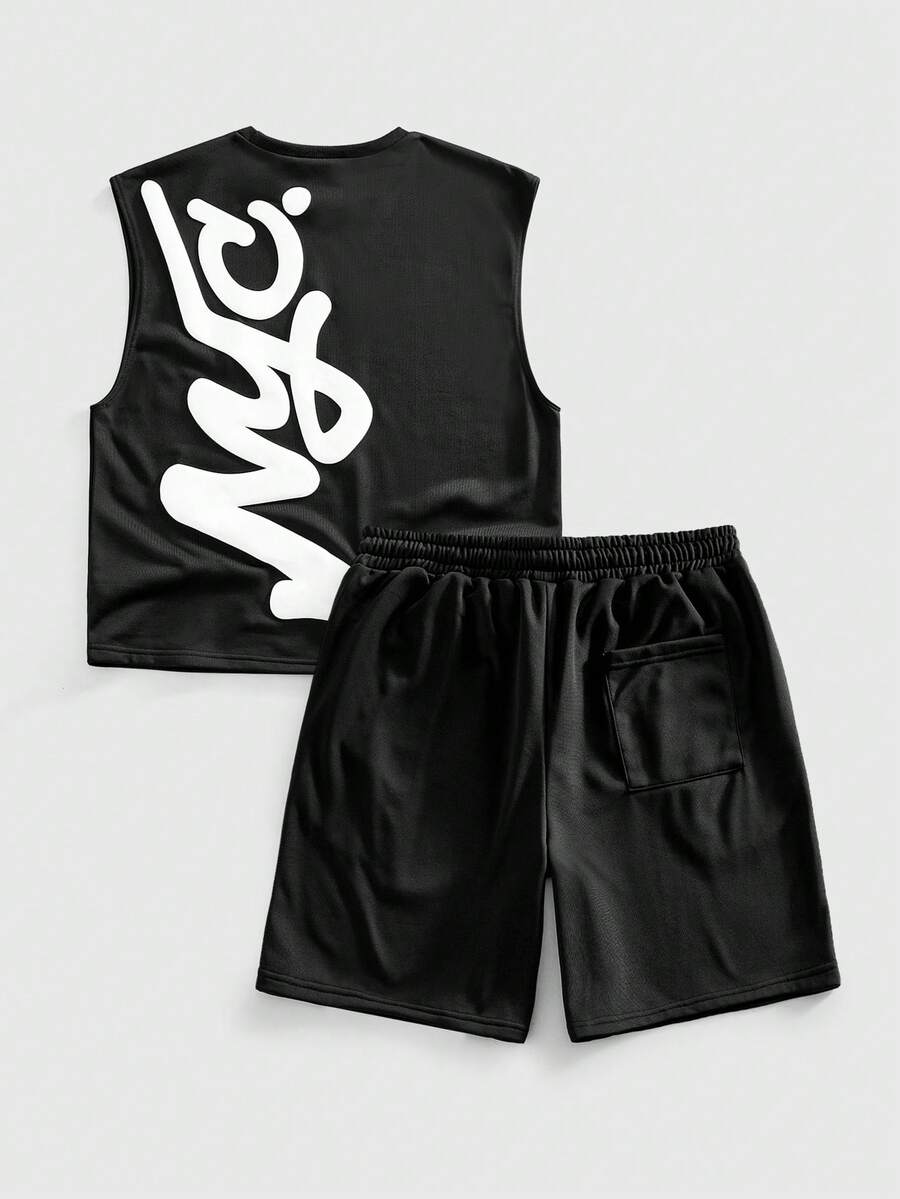 Essentials طقم ملابس علوية كاجوال بطبعة جرافيك وشورت بسحاب للرجال