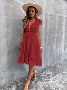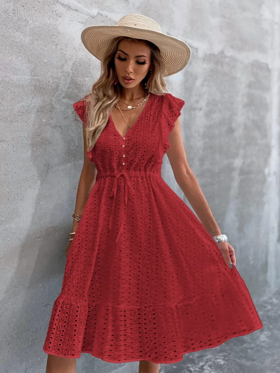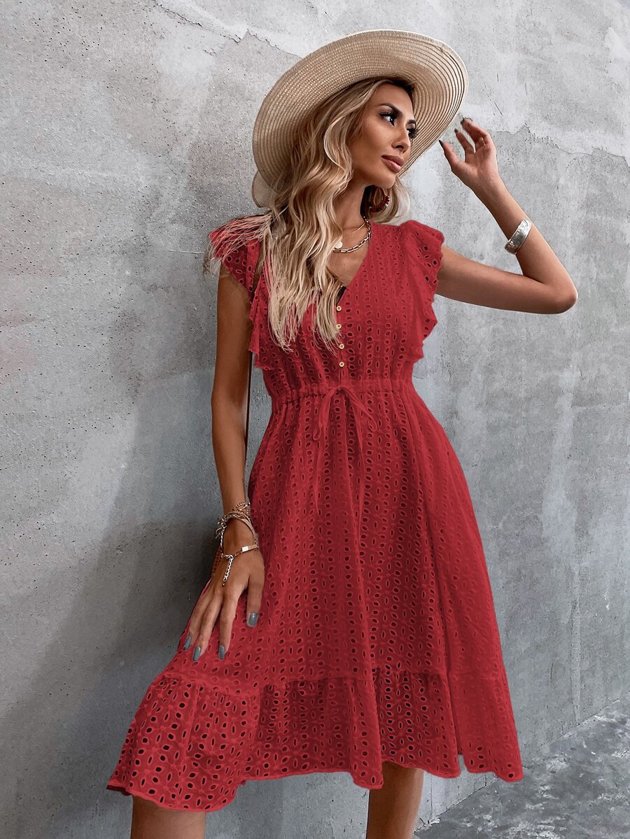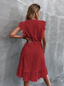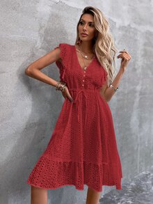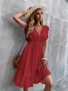 فستان بخط A بحافة مكشكش ومطرز بفتحات