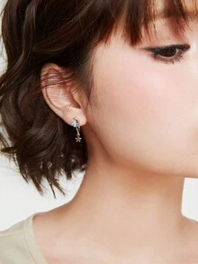 Fairycore 1 زوج من أقراط مشبكية على شكل نجمة وقمر من حجر الراين