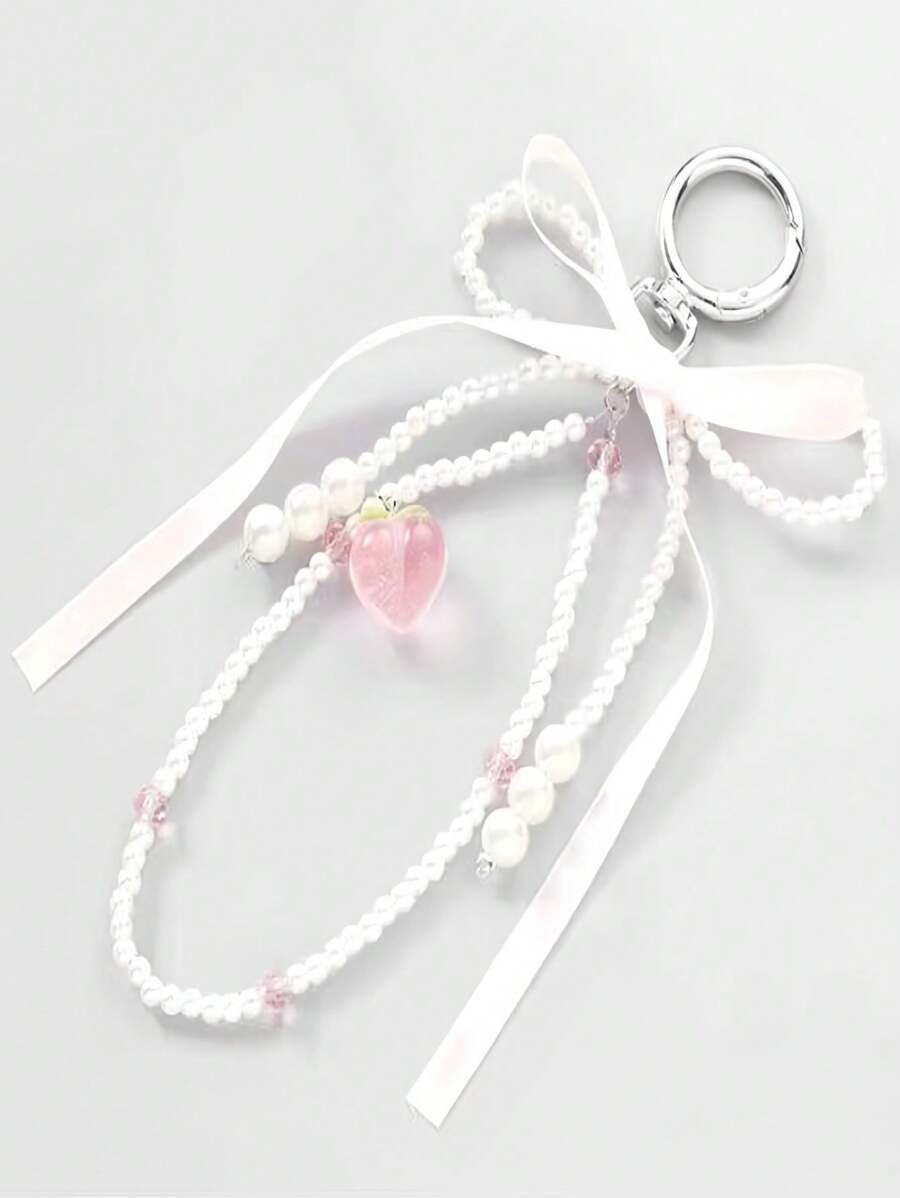 Fairycore قطعة واحدة مفتاح سلسلة زخرفية بتصميم الفراشة الزهرية الحمراء مع شرابة من الخرز الصناعي