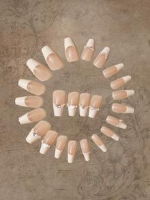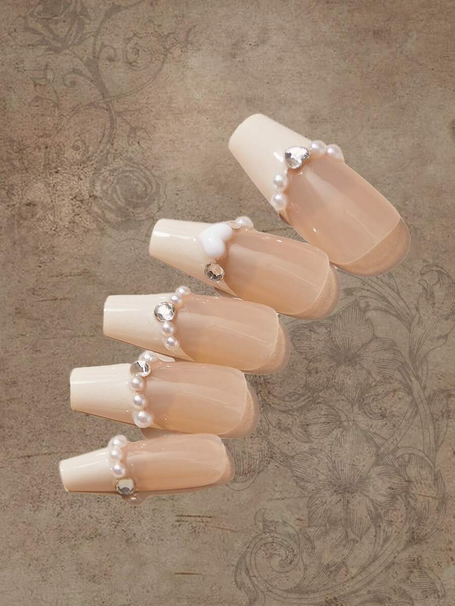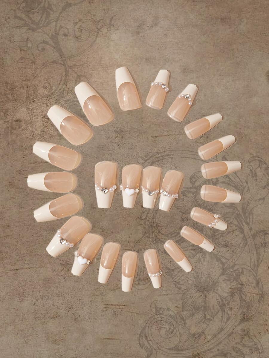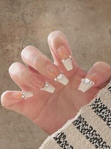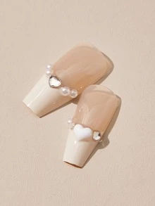 Fairycore 24 قطعة نعش ثلاثي الأبعاد زخرفة قلب أظافر اصطناعية و ورقة واحدة شريط