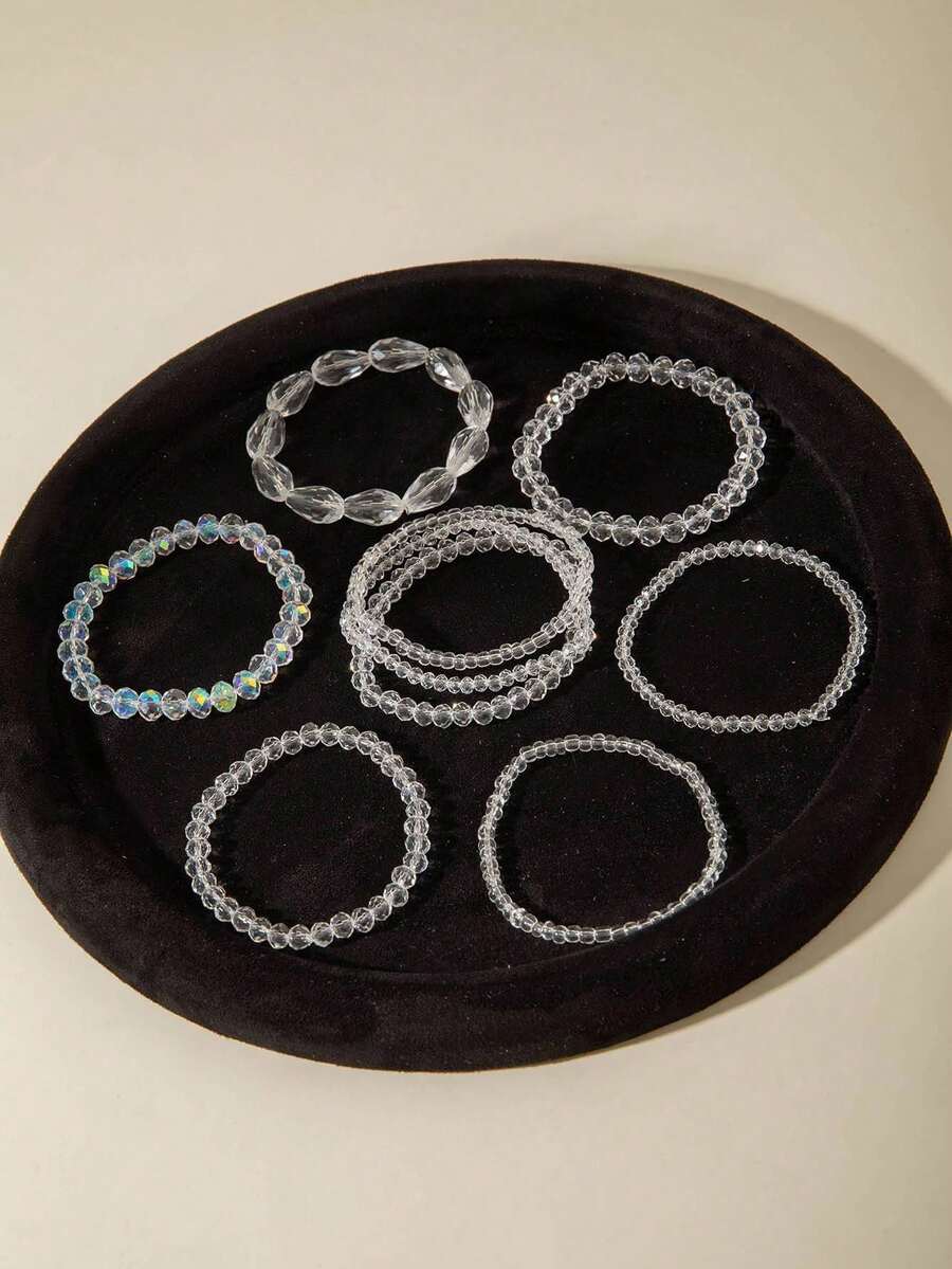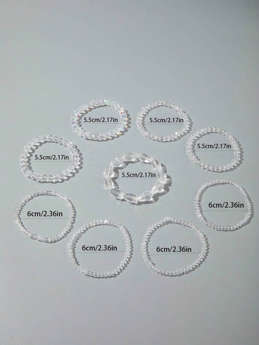 Fairycore 9 قطع مجموعة أساور خرز متعددة الطبقات من الراتنج والخرز الزجاجي والخرز الزجاجي على شكل قطرة ماء، بطراز فرنسي أنيق، أساور عصرية مناسبة للنساء والفتيات، مناسبة للحفلات والرقص والاستخدام اليومي والهدايا