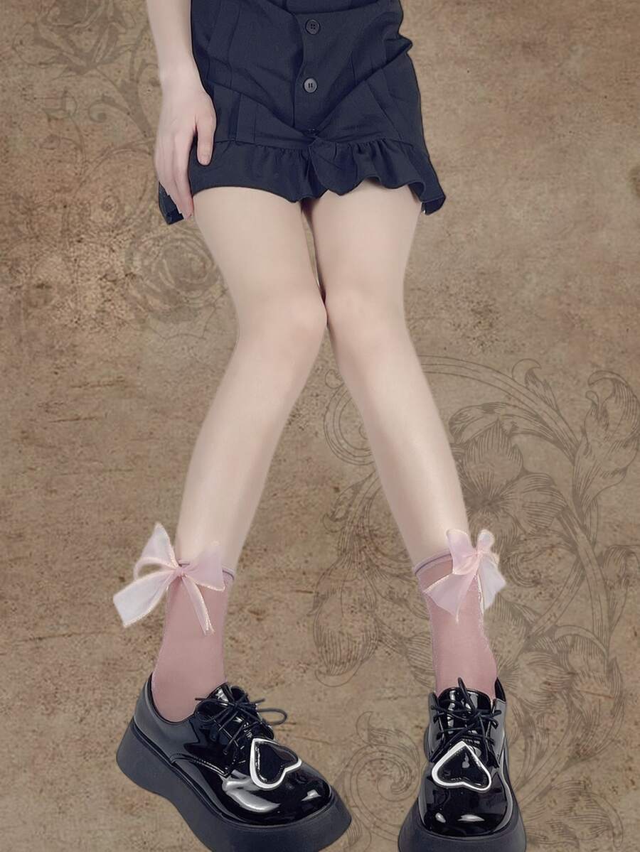 Fairycore جوارب طاقم مزخرف بعقدة الفراشة