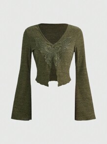 Fairycore تي شيرت مرقع بفراشة مقلم نمط نبات الخس