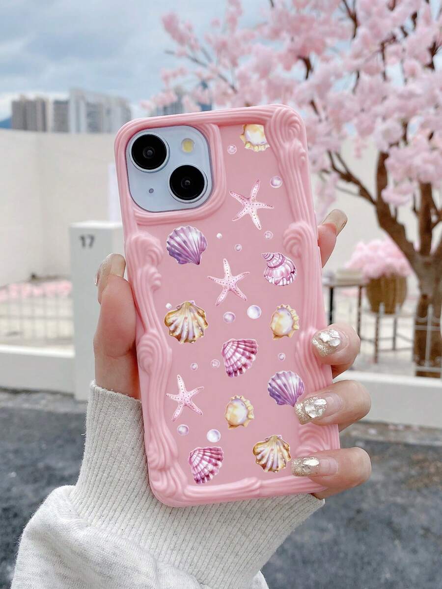 Fairycore كفر هاتف محمول متوافق مع أيفون بطباعة الصدف والنجمة البحرية واللؤلؤ جميل