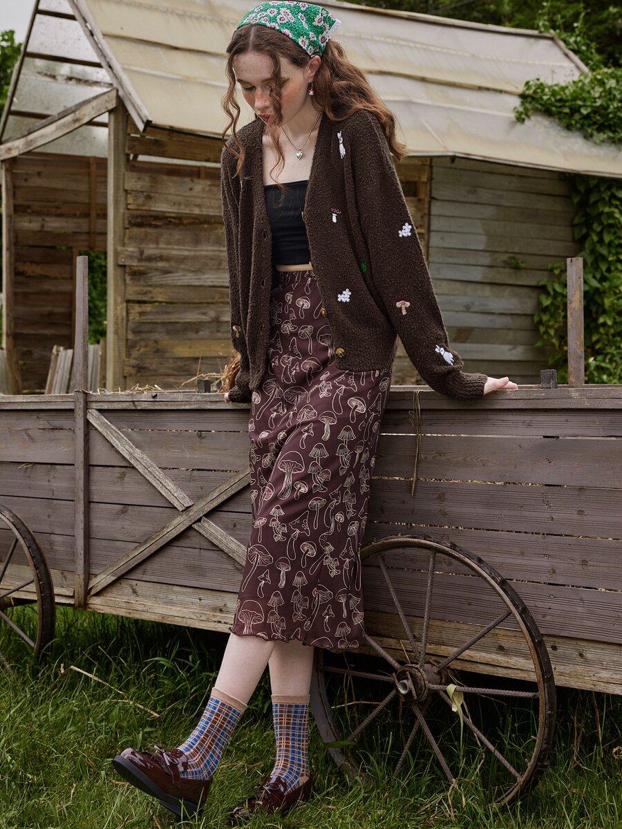 Fairycore كارديجان مطرز بالفطر أزرار أمامية