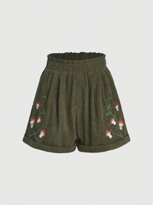 Fairycore بنطلون قصير مطرز بالفطر نسيج قطن
