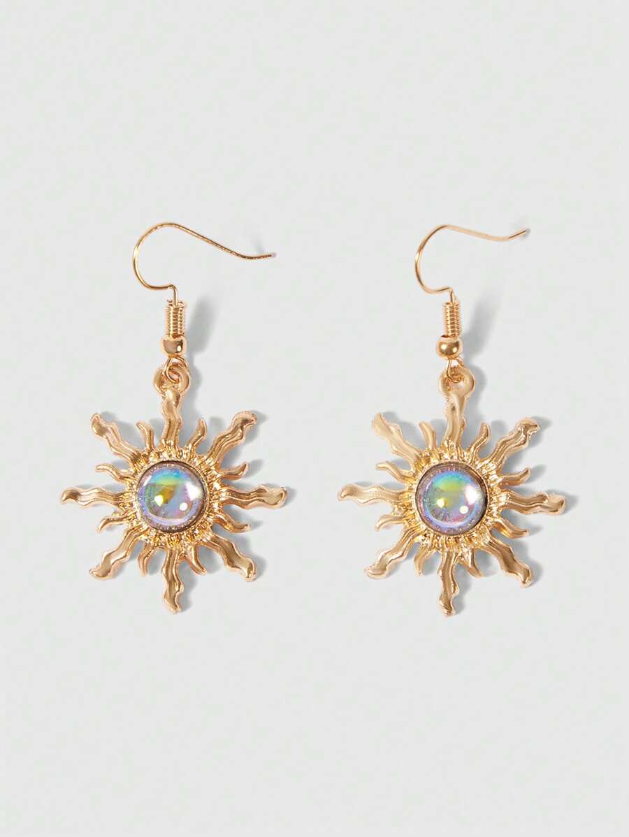 Fairycore أقراط شخصية بلون بارد مصممة بشكل شمس باللون الذهبي والأخضر