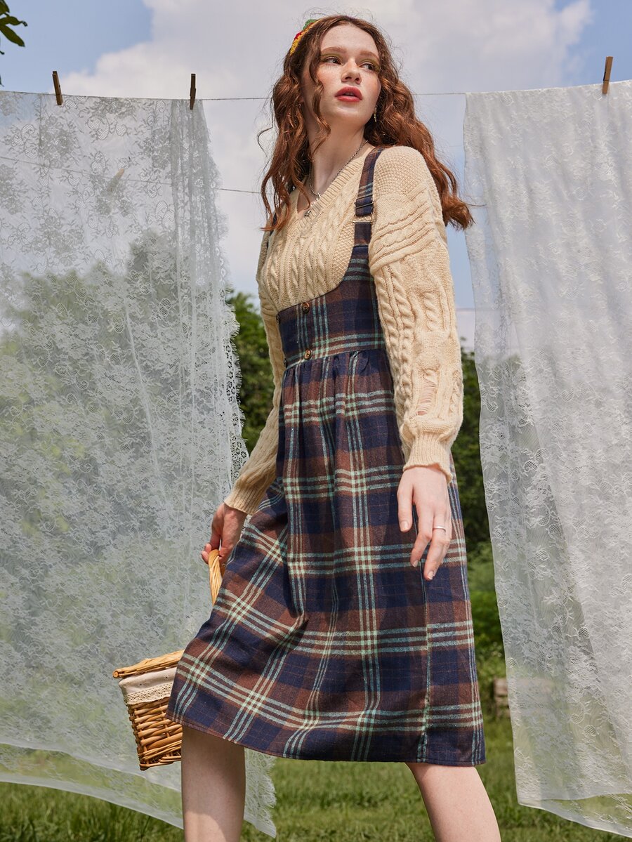 Fairycore فستان افارول مربعات ملونة بدون لباس علوي
