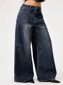 Fairycore جينز مطرز بالفراشات مغسول بطريقة عتيقة مقاس كبير