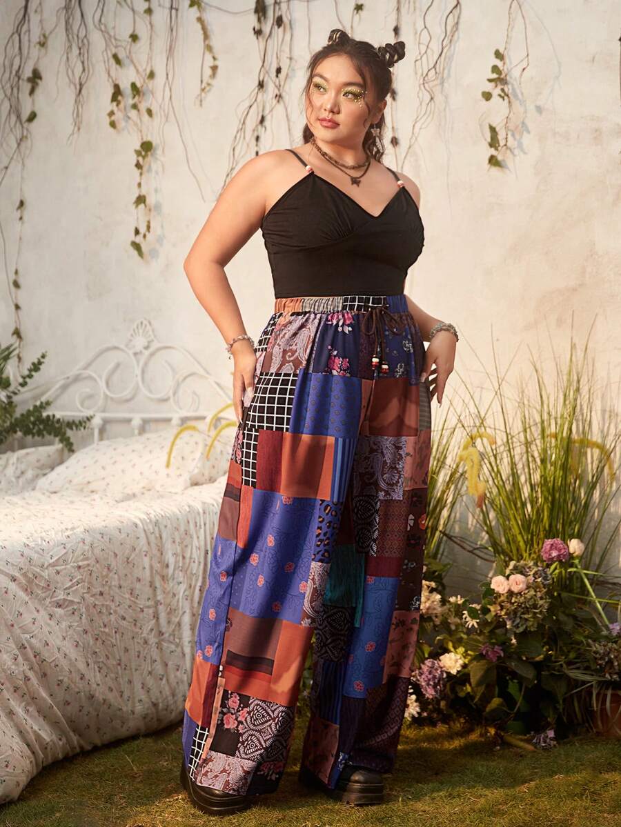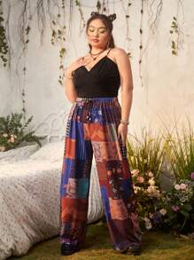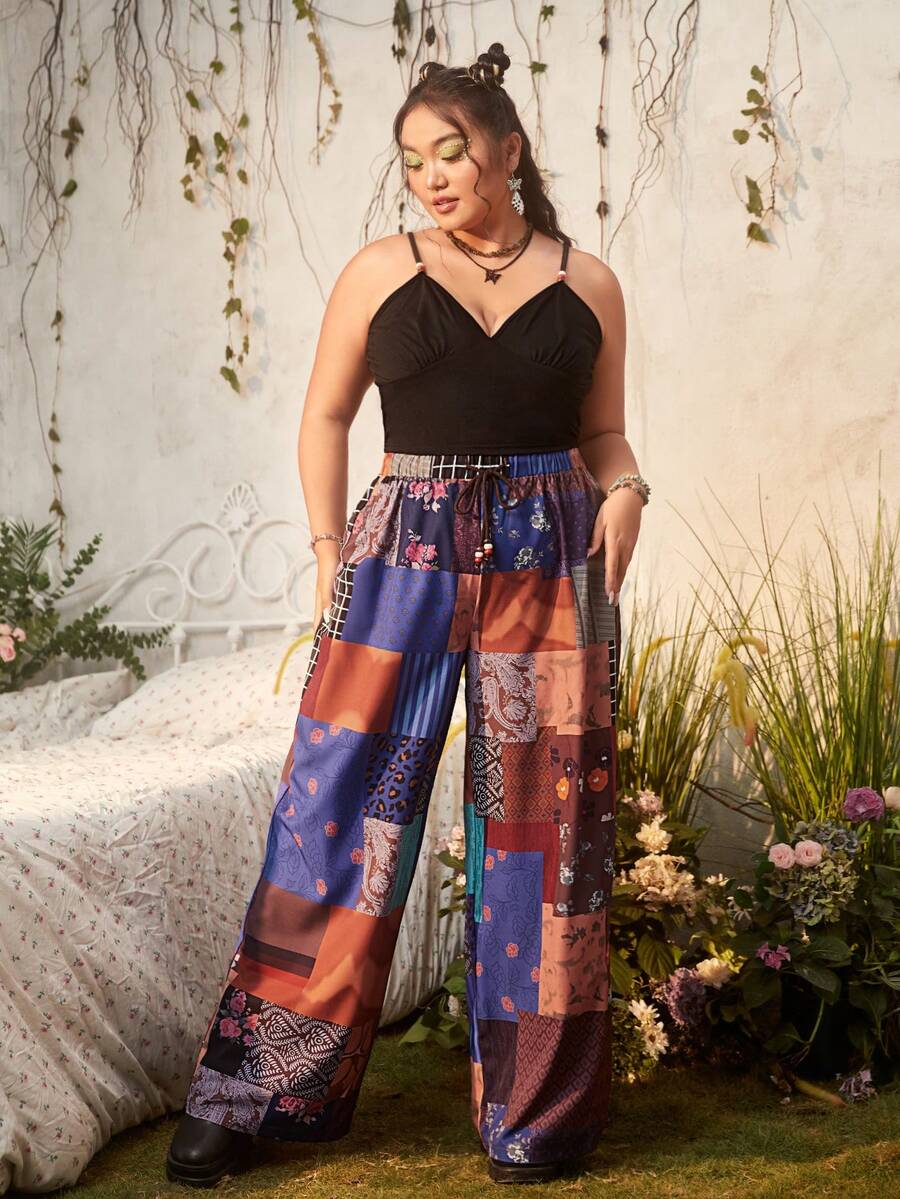 Hippie مقاس كبير موحدة اللون صدرية كامي و طباعة مختلط بنطلون