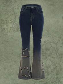 Fairycore بنطلون جينز واسع من الاسفل نمط النجوم ألوان متدرجة ممزق