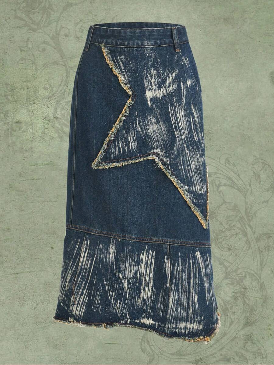 Fairycore تنورة دنيم نمط النجوم مقلم بخام