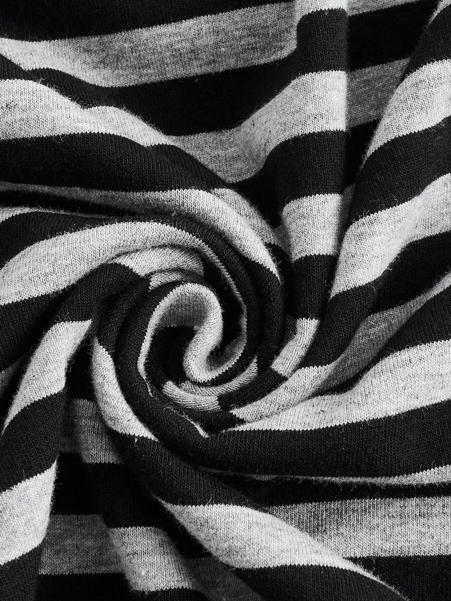 Fairycore تي شيرت طباعة مخطط ياقة غير متماثل