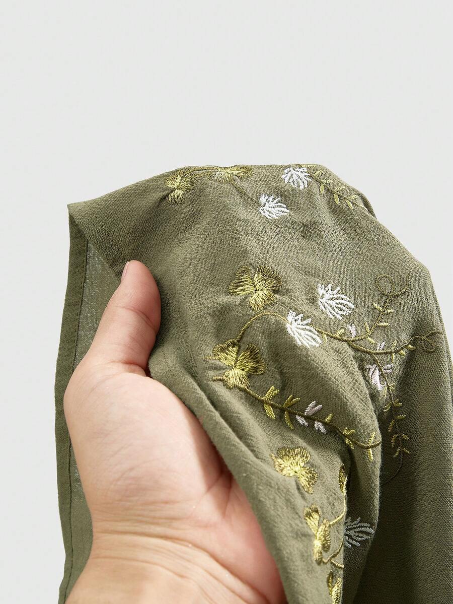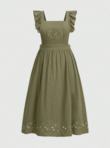 Fairycore فستان طويل للنساء بمقاس زائد بأسلوب أخضر وأشرطة كتف؛ رداء متدرج وتطريز زهوري