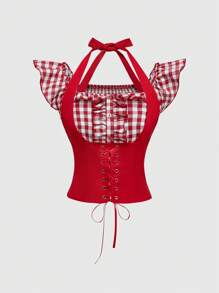 Fairycore قميص نسائي 2 في 1 بنمط المربعات إلى الريف Y2K