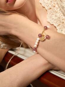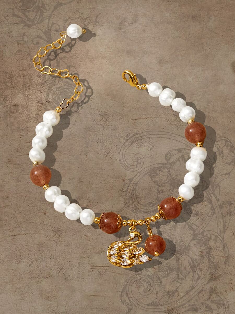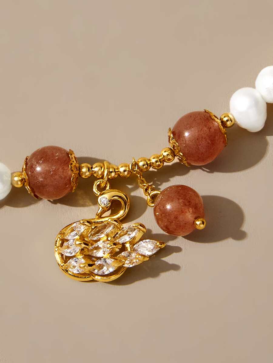 سوار لؤلؤ صناعي و بديكور حجر الراين بجعة حلية