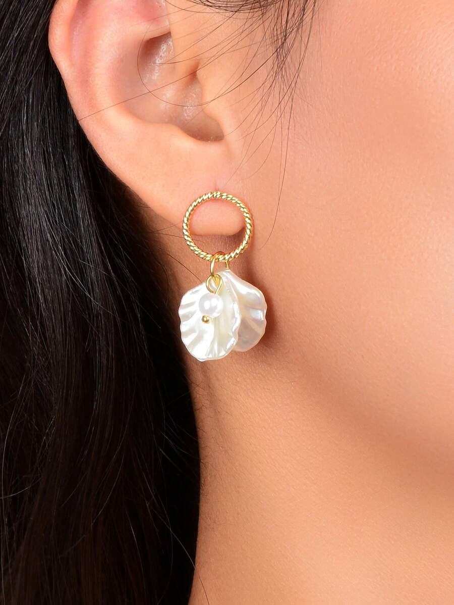 أقراط منخفضة القطر مزدوجة من اللؤلؤ الاصطناعي والمحار