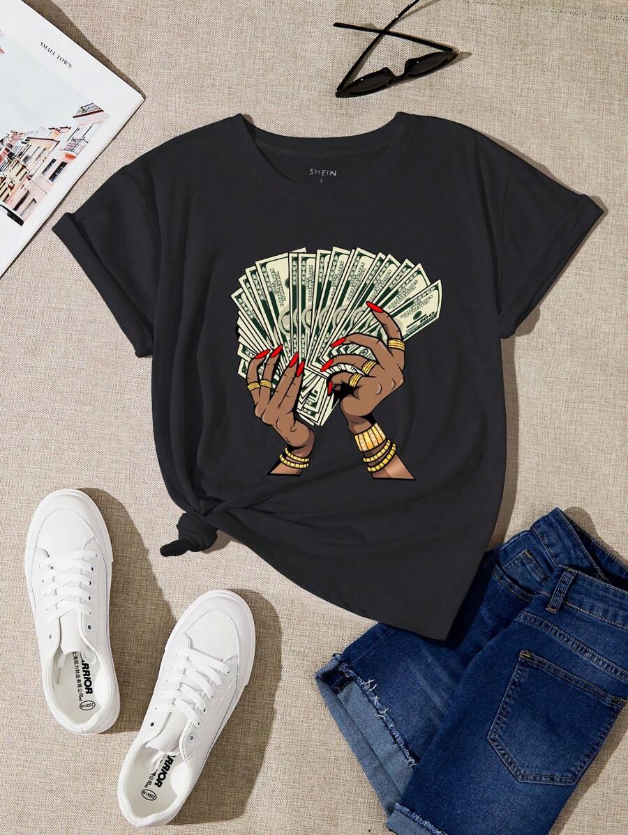 تيشيرت بطباعة شكل ودولار