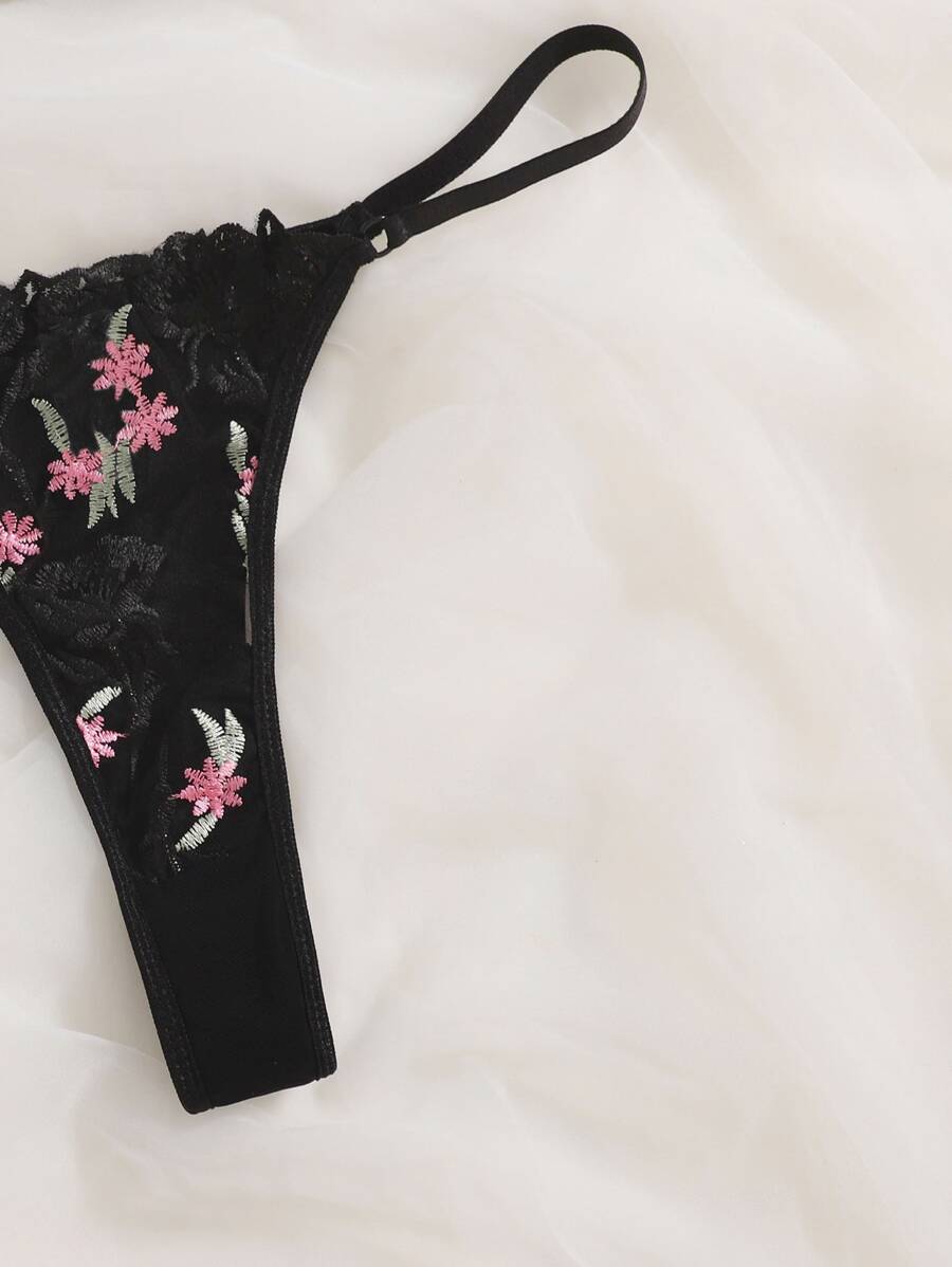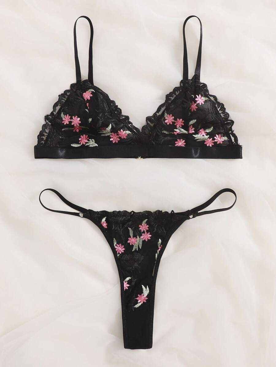 مجموعة لانجري حمالة صدر وملابس داخلية نسائية زهرية مطرزة