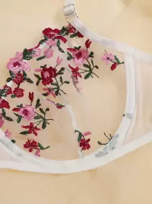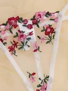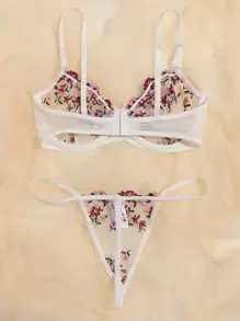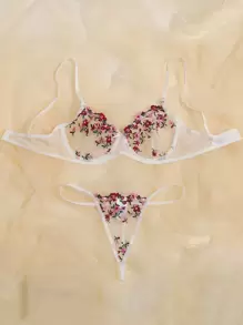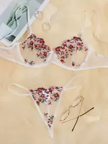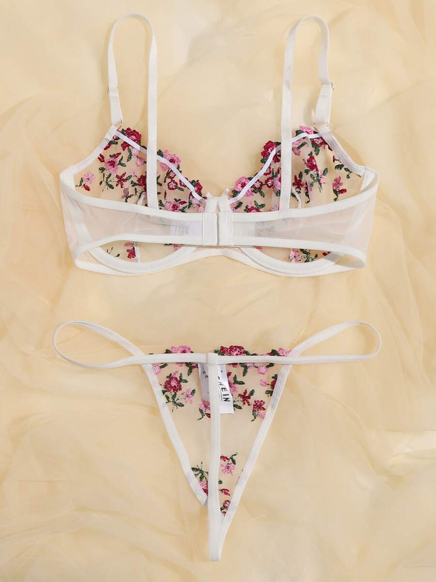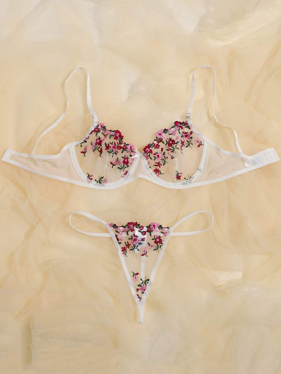 مجموعة ملابس داخلية من الحمالة والسروال المطرزة بالأزهار وذات سلك , اللانجري