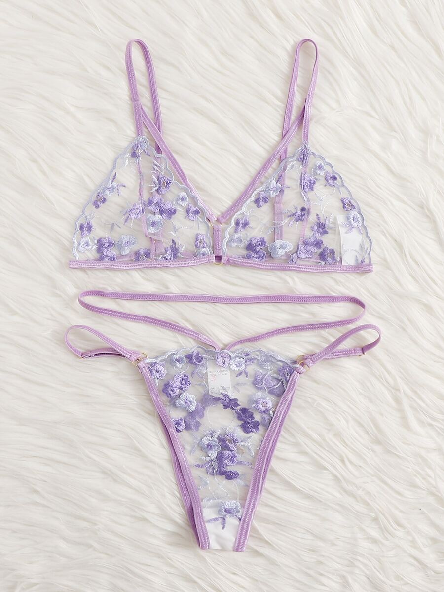 ملابس سكسي داخلية التطريز رسم الزهر رومانسي