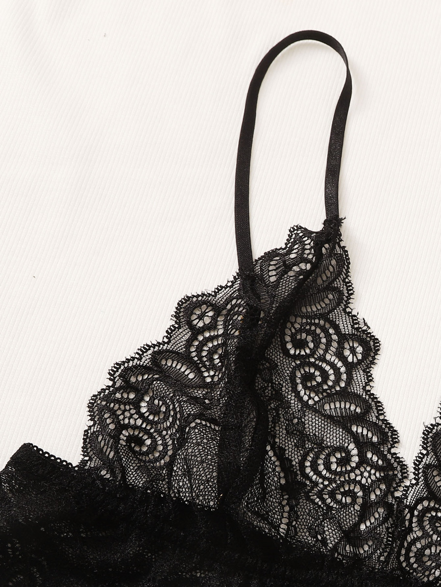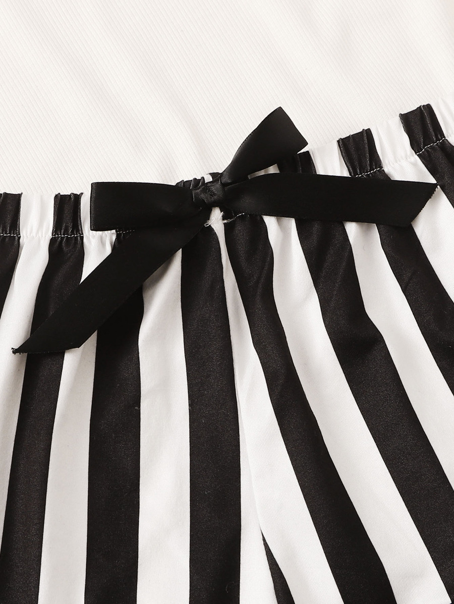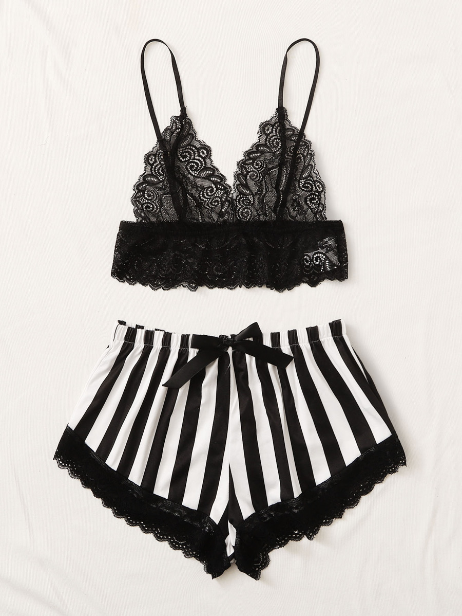 حمالة صدر بتطريز زهري مع سراويل مخططة ، ملابس داخلية