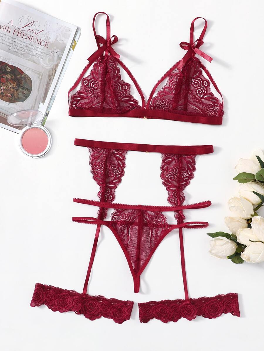 طقم ملابس داخلية بدانتيل مزهر