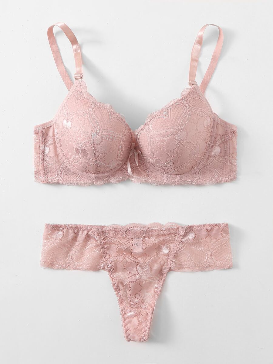 مجموعة ملابس داخلية حمالة صدر ولباس داخلي من الدانتيل الزهري
