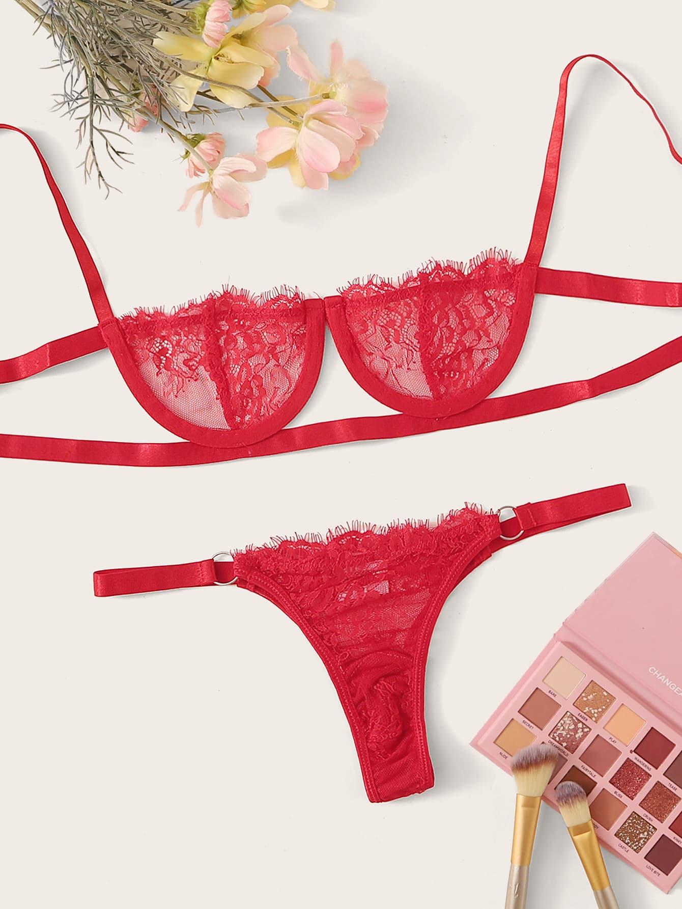 طقم ملابس داخلي دانتيل مزهر