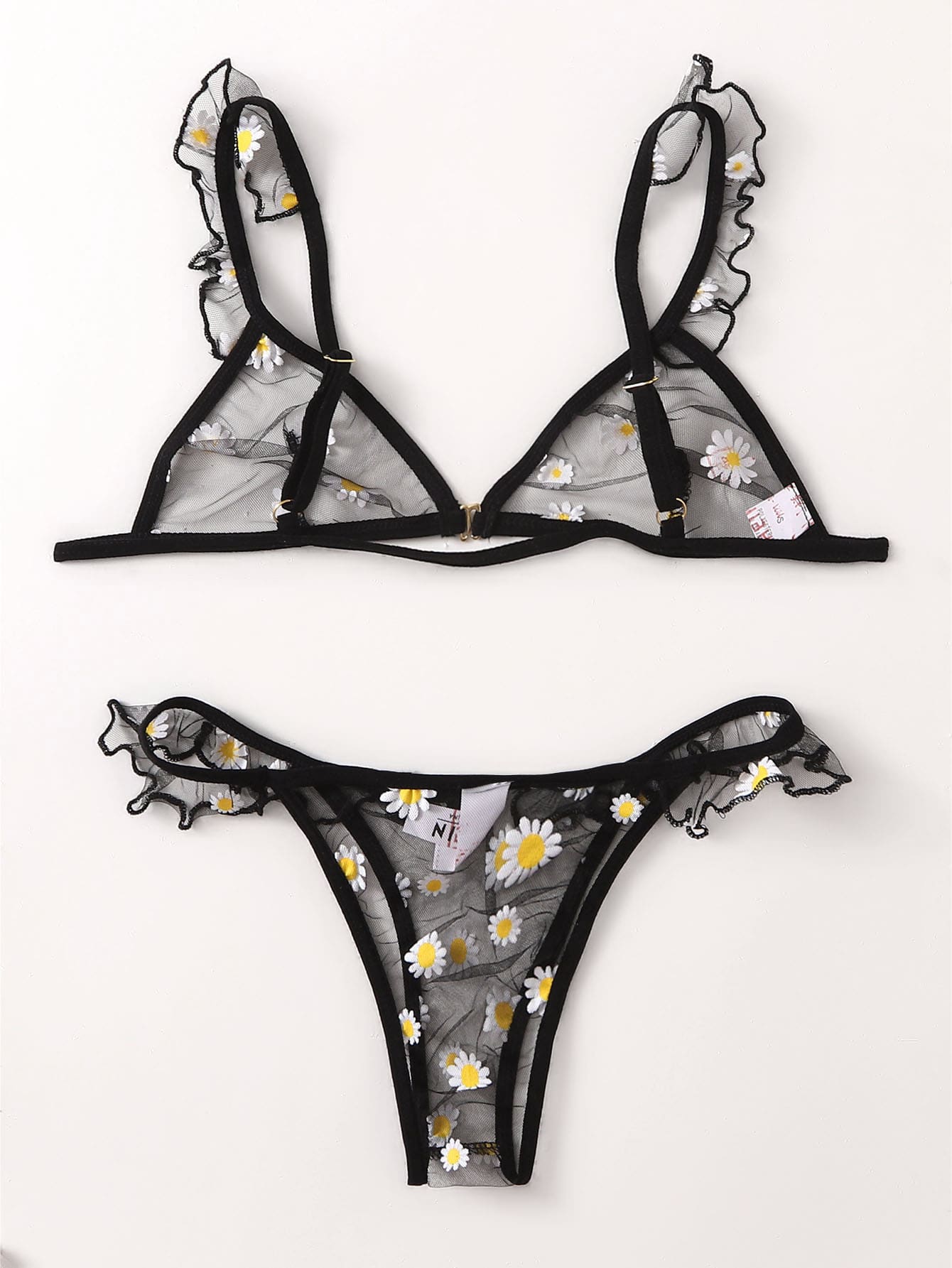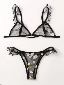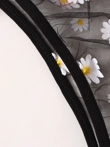 طقم ملابس داخلي شبكي نمط مزهر