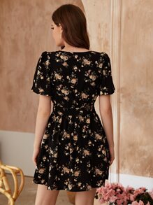 فستان بخط A بطباعة زهر