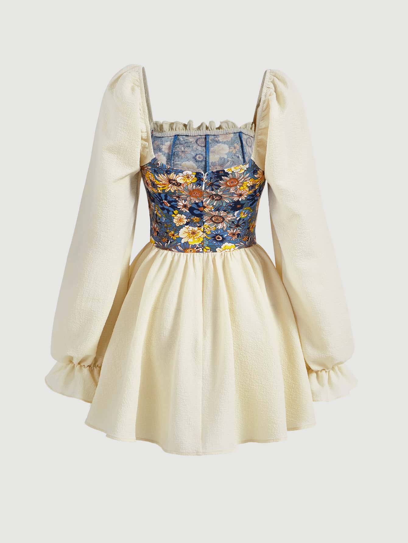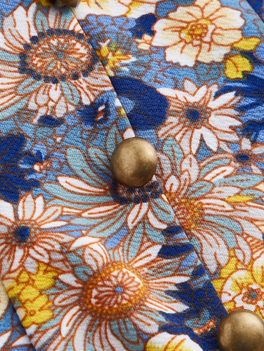 فستان طباعة الأزهار اكمام منتفضة