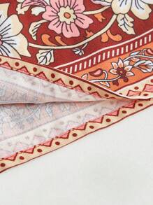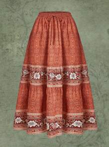 تنورة طباعة الأزهار خصر معقود حافة مكشكشة
