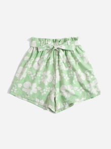 شورت بحزام طباعة الأزهار خصر مكشكش ورقي